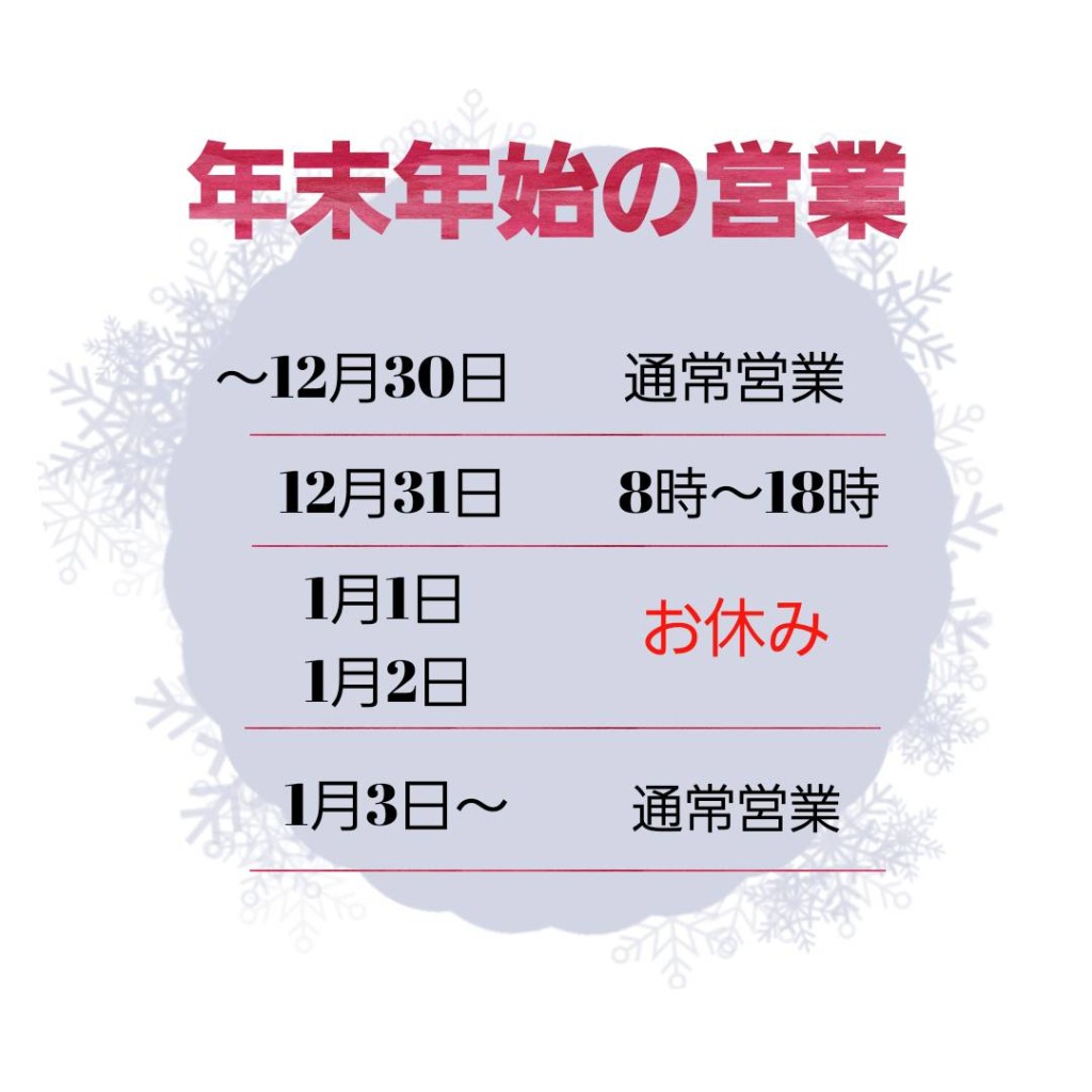 年末年始は、なるべく早めのご予約をお願いいたします。